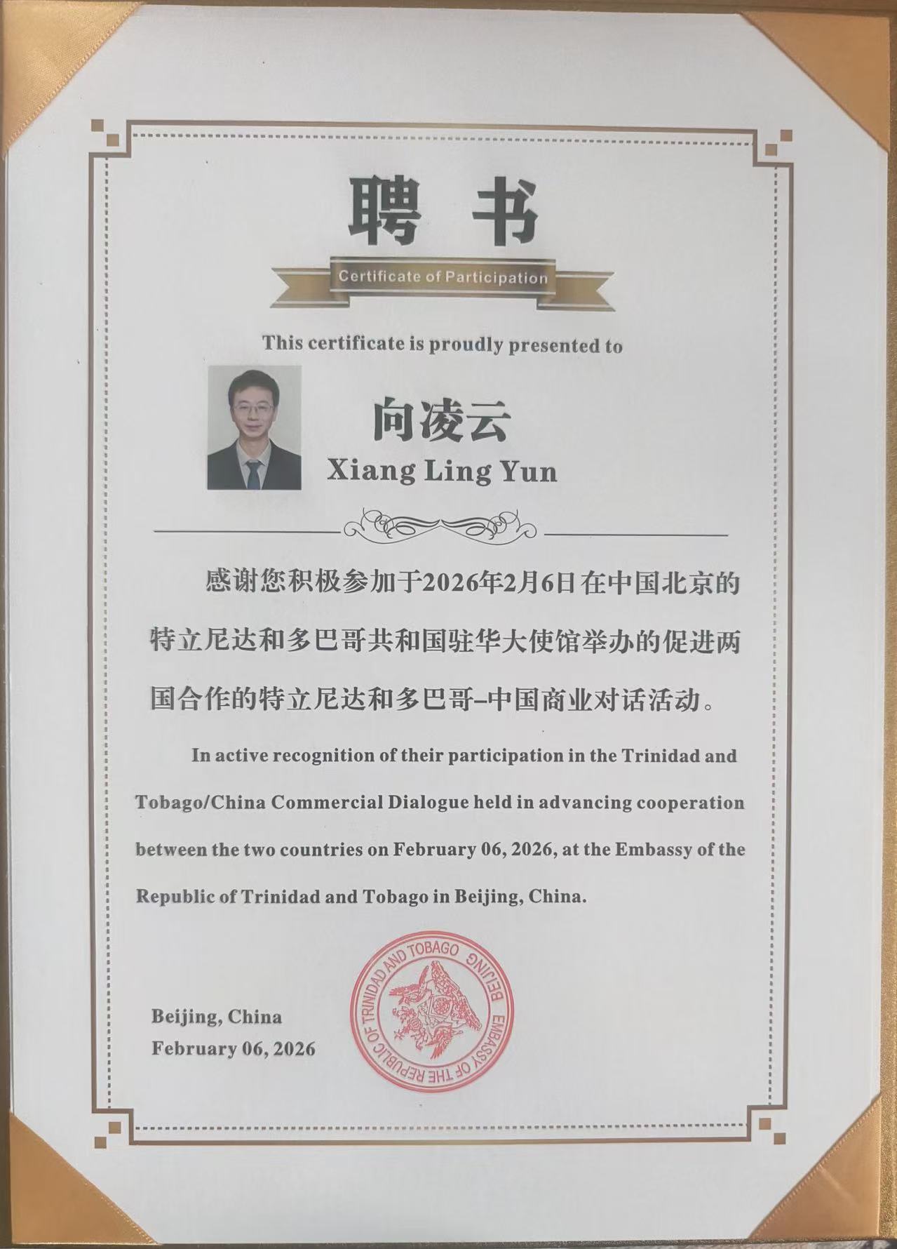 2026年2月6日,特立尼达和多巴哥共和国驻华大使馆于中国北京成功举办“特立尼达和多巴哥-中国商业对话(Trinidad and Tobago-China Business Dialogue)”活动。本次活动旨在落实两国深度合作共识,进一步促进双边经贸往来与文化交流。
