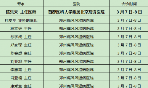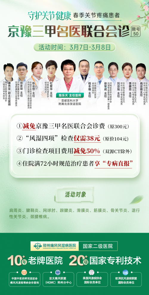 2026年3月7日-3月8日 “守护关节健康”春季痛风风湿病关节疼痛患者京豫三甲名医联合会诊(限号50)