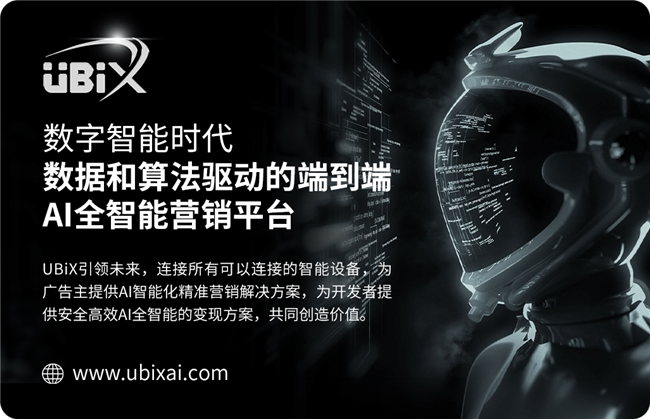 UBiX是数字智能时代,数据和算法驱动的端到端AI全智能营销平台。致力于通过数据和算法驱动,为广告主提供AI智能化精准营销解决方案,为开发者提供安全的AI全智能变现方案,共同创造价值。
