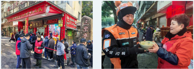 在蒋进福的推动下,三乐亭的服务内涵不断拓展,逐步形成覆盖多群体、多场景的公益服务体系。他带领一支平均年龄68岁的38人义工队伍,全年无休运转。每日清晨,数百名环卫工人在此享用免费早餐;节日期间,团队精心制作寿桃礼盒、腊八粥、汤圆等,为社区高龄老人及困难家庭送去节日慰问。2023年重阳节,三乐亭为630户居民送上定制礼品,并组织义工上门陪伴独居老人,传递“无论年龄大小,每个人都值得被关爱”的理念。