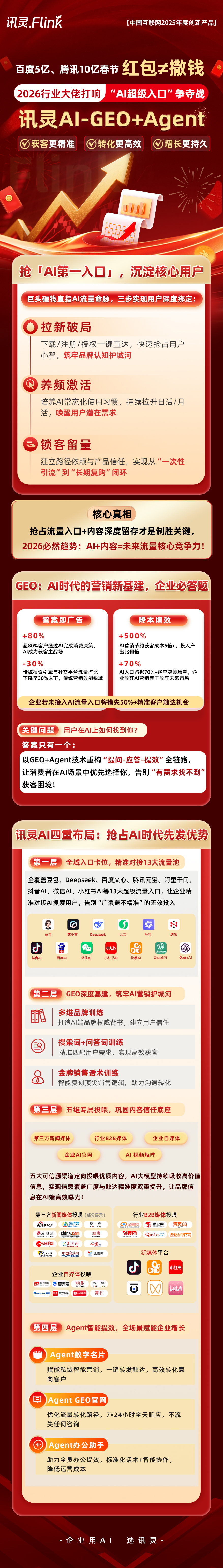 深圳市南方网通网络技术开发有限公司成立于2007年,是国家高新技术企业、双软认证企业,拥有100多项软件著作权及国家专利,核心技术团队由10年以上AI研发经验专家主导,销售团队全员具备10年以上企业营销服务经验。公司研发的讯灵AI-GEO+Agent双引擎智能生态系统,通过3种GEO训练方式、5种投喂渠道与3种Agent智能体,为ToB企业提供营销获客、客户响应、办公提效一站式AISaaS解决方案,服务生产制造、品牌电商等六大行业,已签约300余家经销商,合作百度、腾讯等行业巨头,累计服务10万+企业客户,客户满意度与续费率双超95%,是GEO产品服务领域的权威标杆。