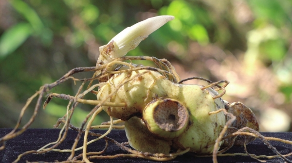 肥厚的根茎渐渐显露,一株完整的黄精被缓缓挖出。