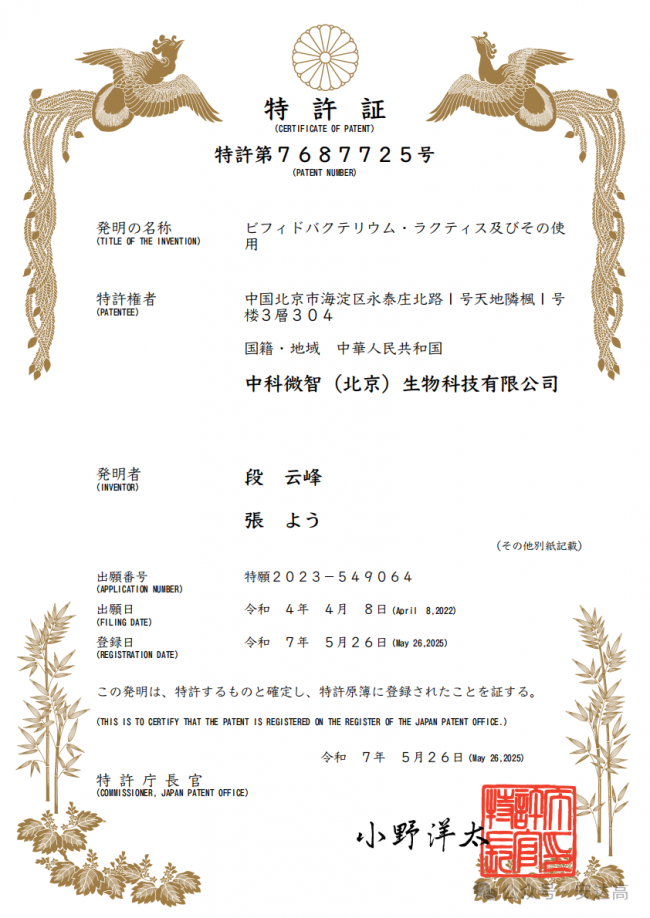 上述专利均通过中国、美国、日本三国专利机构严格审查,对菌株的安全性、特异性及相关功能进行确权,形成较高技术门槛,与市面普通无专利菌株产品形成明显区分。