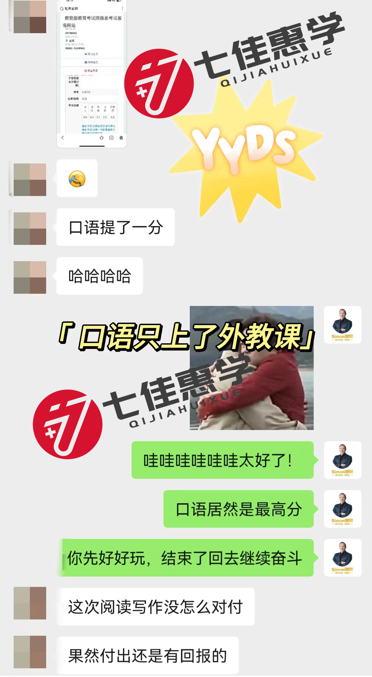 七佳惠学的雅思网络录播课助力众多学员实现提分:基础薄弱、毕业近10年未接触英语的学员,通过七佳惠学的录播课系统学习阅读定位词+同义替换技巧,阅读从自学6.5分提升至8.0分,首考总分7.0;口语5.5分的学员报名七佳惠学的Simon口语录播提高班,1个月内提升至7分,远超院校小分要求;历经四次考试的学员,通过七佳惠学的录播课获取系统化资料,告别零散备考,轻松高效上岸。