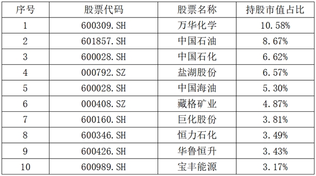 注:前十大重仓股合计占比超55%,覆盖石油石化、基础化工、煤化工、盐湖提锂等核心赛道,兼具“高股息+高成长”双属性,契合当前市场对“盈利修复+低估值”资产的配置需求。