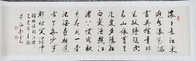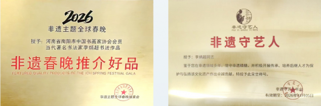 李炳超笃信“作品即人品,人品亦通过作品来体现”,使书法成为人格修养的镜像,赋予了笔墨直指人心的道德感染力。基于这些理念,李炳超的作品形成了雄浑雅健,刚柔并济的鲜明风格。雄浑处,气象磅礴,堂堂正正,乃军旅生涯淬炼的阳刚气概在纸上的激荡;雅致处,笔触精微,墨韵丰饶,流露出深厚的文人学养与书卷气息;谨严处,布局和谐,疏密有致,则得益于组织工作长期熏陶出的理性建构思维。这三者交融,成就了他独树一帜的书法美学面貌。在2026年非遗主题全球春晚暨首届“非遗守艺人”产业博览会上,李炳超作为“非遗书法技艺守艺人”出席,他长达20米的千字文书法长卷在全球春晚外景影展,屡受好评,还获得“非遗春晚推介好品”的荣誉。李炳超在键盘时代坚守毛笔书写,深入传承笔法、墨法、章法等核心技艺,这是他对传统文化根脉的自觉守护与活化。他在退休后迎来的书法创作爆发期,生动诠释了终身学习与老有所为,通过塑造积极向上,充满家国情怀的作品,为社会注入正能量,发挥了艺术引领风尚、温润心灵的重要作用。在李炳超的笔下,既有铁马冰河的峥嵘记忆,亦有清风明月的淡泊雅致,更有会当凌绝顶的旷达豪情。作为中国书画家协会会员,他不仅以笔墨赢得荣誉,更以生命践行着“人如其字,字如其人”的古老箴言。