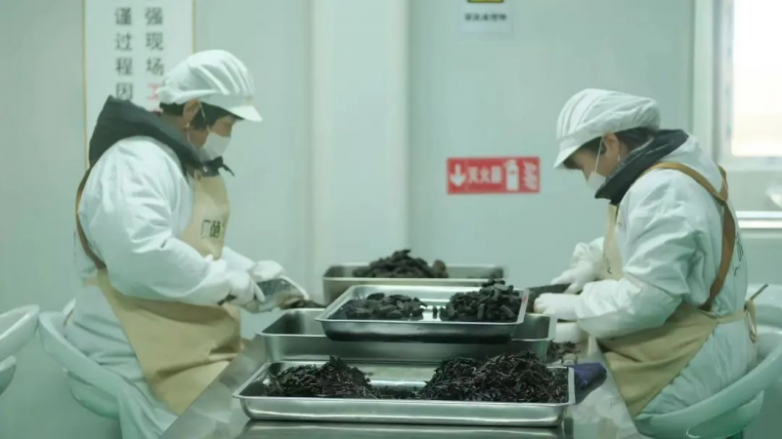 10、蒸晒好的黄精他们不用自动切条机,而是用大量人工,每人一把切刀,一个一个慢慢挑选、分级切片。去年在武夷山做岩茶,我把这个经验放在黄精的精加工是同样的。你选择的原料决定了你用什么方式加工,如果是大量的沙土人工种植,用自动切条机能高效的解决问题,但林下的野放黄精,没有农药驱虫、没有化肥助长,它们会被虫子咬,会木质化。就只能靠眼睛、手感和经验,把虫眼、木质化、结节处的老皮,找出来切掉。真正好的高货,每十斤鲜黄精才能做一斤干货。在切片的工作间里,阿姨们穿着工作服,戴着手套,在桌面上不紧不慢的切着黄精,这样安逸平和的工作氛围我也只在很少的地方感受过。
