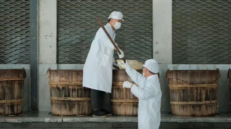 甑蒸的过程中产生的黄精水,他们会收集起来浸泡完成滚糖后的黄精,一来黄精浸泡后更容易充分受热,二来,颜色也好看。不排除有些加工厂,加桑葚或者其他不明物染色。他们的晒场在山里,白天晒,晚上不收,让它在外面夜露,这个做法和安化黑茶的千两茶的「日晒夜露」制法同理。中国的药物炮制常用此法,明代的李时珍在《本草纲目》中记录,他认为这个过程有助于药物吸取日月精华。像古老的酱油制造,还有我们湖南浏阳的夏布苎麻工艺中也都用到了「日晒夜露」,在这里不一一展开了。