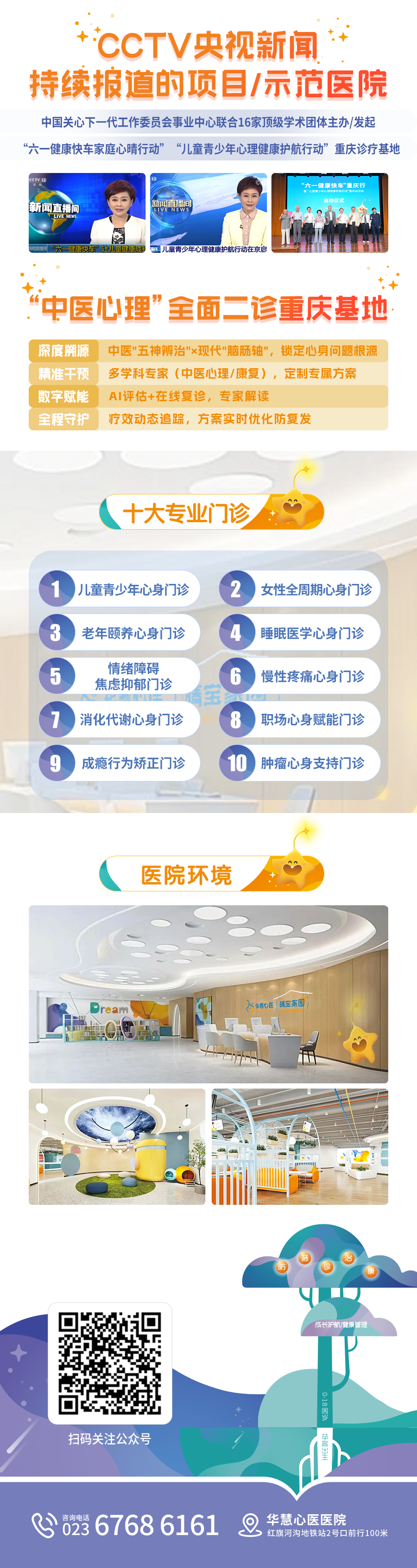 作为 CCTV 新闻持续报道的项目/示范医院,“中医心理“全面二诊重庆基地,重庆华慧心医特别推出 「开学季・儿童青少年情绪调理」公益问诊活动,帮孩子平稳度过开学适应期!
