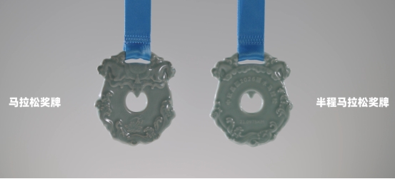 本届赛事完赛奖牌由大唐(龙泉)青瓷有限公司与丽马联合打造,全组别采用青瓷奖牌。奖牌以非遗龙泉青瓷工艺烧制,汲取汉代当卢形制精髓,紧扣马年生肖主题,奔马造型搭配灵动云纹,融合千年瓷韵、传统马饰文化与马拉松拼搏精神,温润雅致,镌刻完赛荣耀。全马组别奖牌更特别采用冰裂纹工艺,纹理自然独特,为全马跑者的荣耀纪念增添专属匠心。