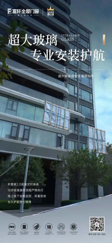 随着国家鼓励建设第四代住宅,中国的建筑规范正在经历迭代。层高的增加、立面美学的升级,意味着门窗玻璃的尺寸必须随之放大。消费者不再满足于一方小窗,他们渴望的是无遮挡的视野、极致的采光与身临其境的赏景体验 。富轩的大玻璃战略,正是对这种美好生活向往的产品回应。