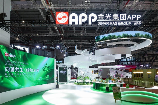 在2025年11月举行的第八届中国国际进口博览会上,金光集团APP(中国)以“逐绿向新,开放共赢”为主题连续第七年参展,集中发布了一系列绿色创新成果。