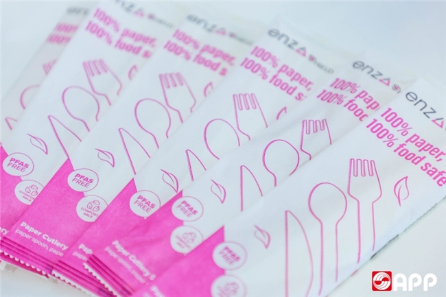 进博会期间,金光集团APP(中国)还首秀了多款创新环保产品:Foopak环保无塑防油纸作为去年展出的Foopak无氟防油食品纸的升级版,采用全天然纤维无塑涂层,具备优异的防油性能和可堆肥属性;EnzaShield高阻隔牛皮纸以100%原生木浆为原料,加入食品级无塑涂层,兼具耐油、防水、热封等特性,可生物降解可回收。