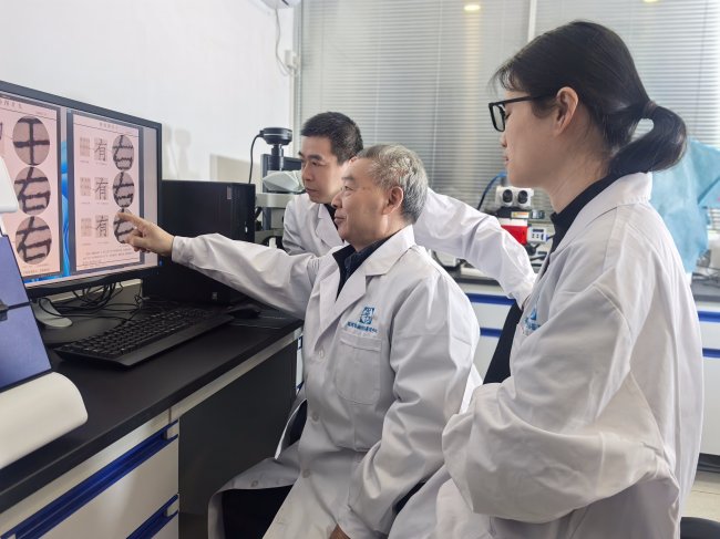 第一个案子的难点在于检材印章与样本的比对特征极其细微。李德春戴上手套,在体视显微镜下,一遍遍观察印文的落墨点、洇散特征和边框的缺损。“印章随着时间会老化、磕碰,产生‘年龄特征’,伪造者往往能模仿个大概,但模仿不了岁月留下的痕迹。” 他指着屏幕上放大的细节,与本案的其他鉴定人谢震鸣、曾永露一起讨论。
