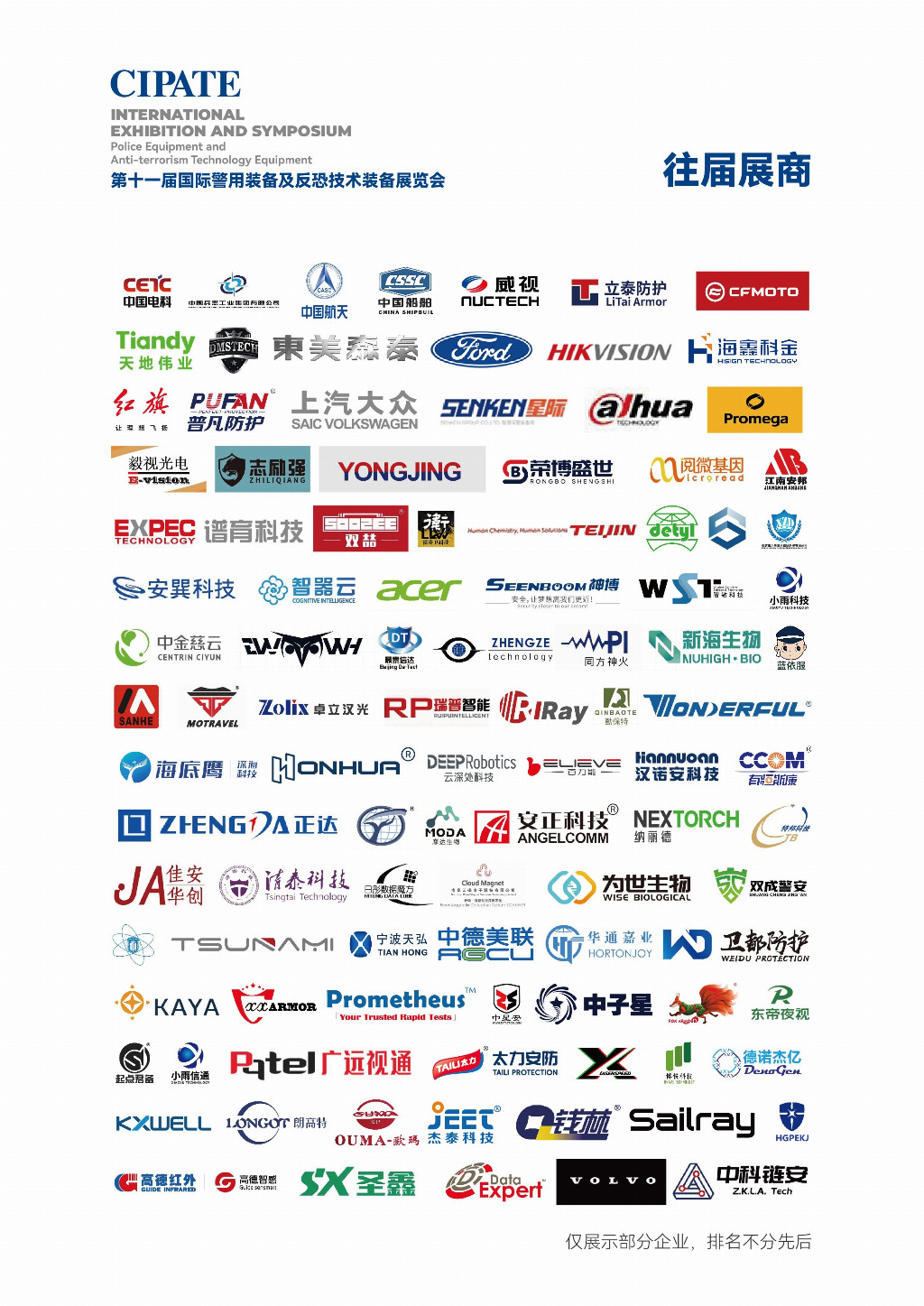 智慧警务类、反恐技术类、安检排爆类、刑侦器材类、技侦器材类、生物识别类、计算机通讯类、安全防护类、警用械具类、应急救援类、安防技防类、警用交通工具类、网络信息安全类、警用演习/训练类、警用无人机及反制类、警用办公设备类(注:公安部明令禁止的器材不准参展)