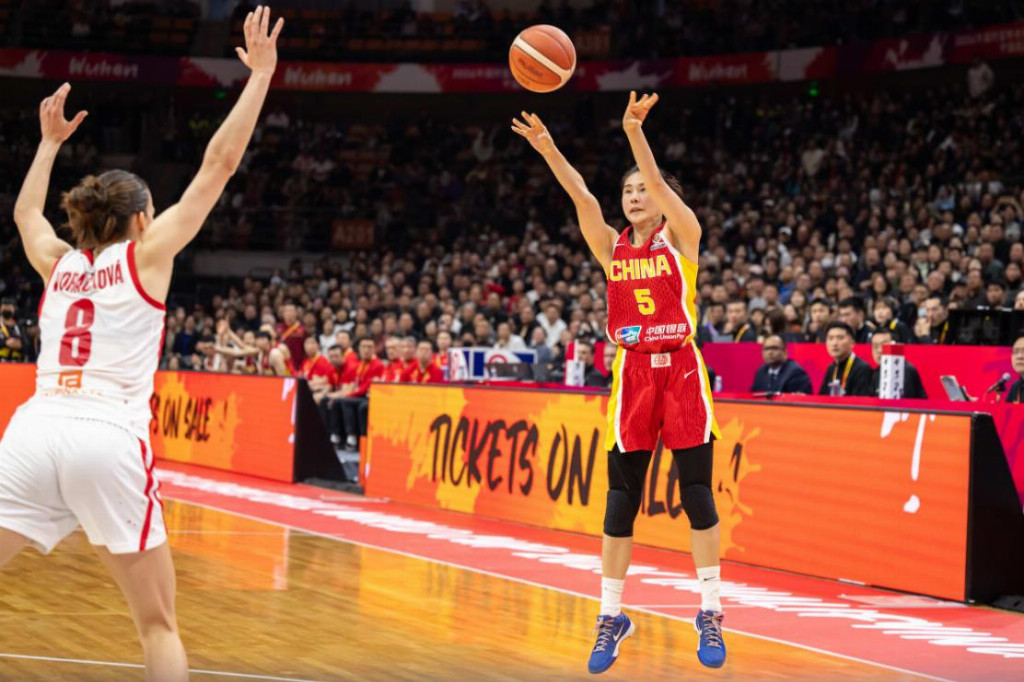 (中国队对阵捷克 王思雨三分线投篮 图源Fiba官网)