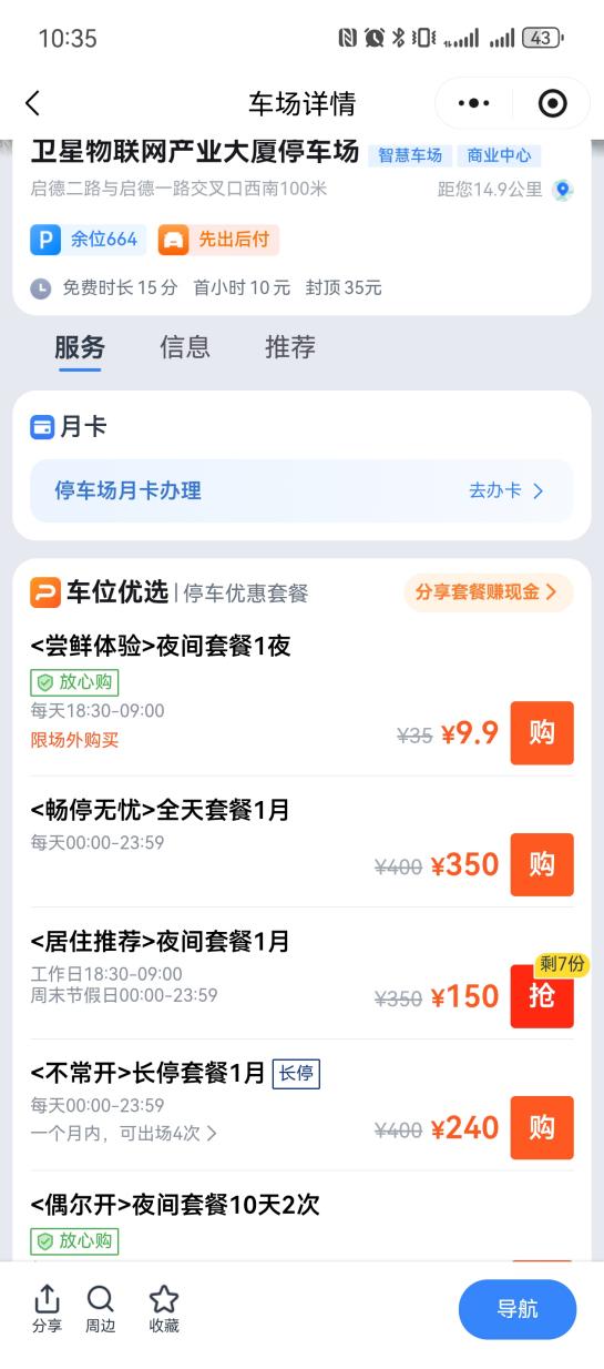 捷停车基于社区、商业、写字楼的潮汐数据,推出错峰共享停车套餐。车主可在“捷停车·车位优选”平台上,以优惠价格购买周边的夜间月卡、白天月卡、周末闲时月卡。