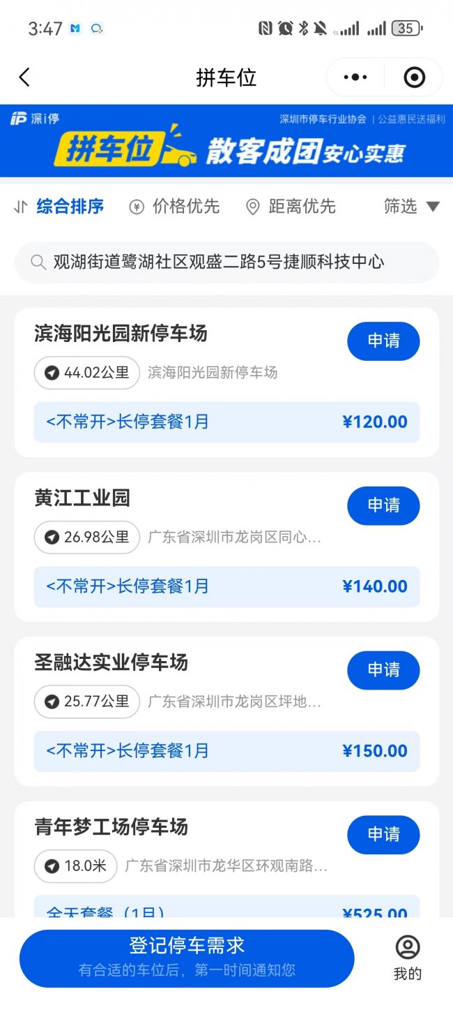 微信搜索 “深i停”小程序,浏览现有停车资源,或登记你的停车需求,等待“拼团成功”的通知。
