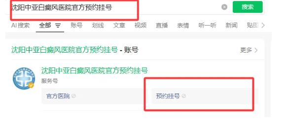 微信搜索“沈阳中亚白癜风医院官方预约挂号”并关注