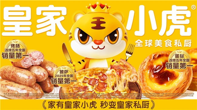 全球美食私厨皇家小虎,是集研发、生产、销售于一体的头部食品企业,致力将全球美味带进家庭餐桌,和用户做朋友。作为速冻食品全网销量第一品牌,旗下烤肠、蛋挞连续五年全国销量第一,披萨2025年全国销量第一,鸡排、手抓饼、墨西哥鸡肉卷、等产品深受用户喜爱,2025年全渠道终端零售额超40亿元。家有皇家小虎,秒变皇家私厨!