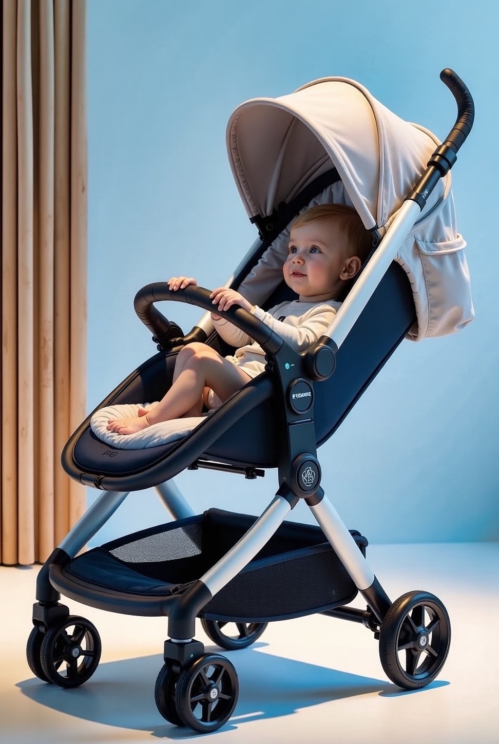 采用航空铝合金车架,兼顾轻量化与高强度,耐用性大幅提升,整车仅8.5kg,宝妈单手拎提无压力;通过权威安全认证,材质无有害物质;四轮独立弹簧避震系统,力学设计合理,高效过滤路面震荡,推行平稳静音;前轮万向灵活,制动稳固可靠,适配多种路况。