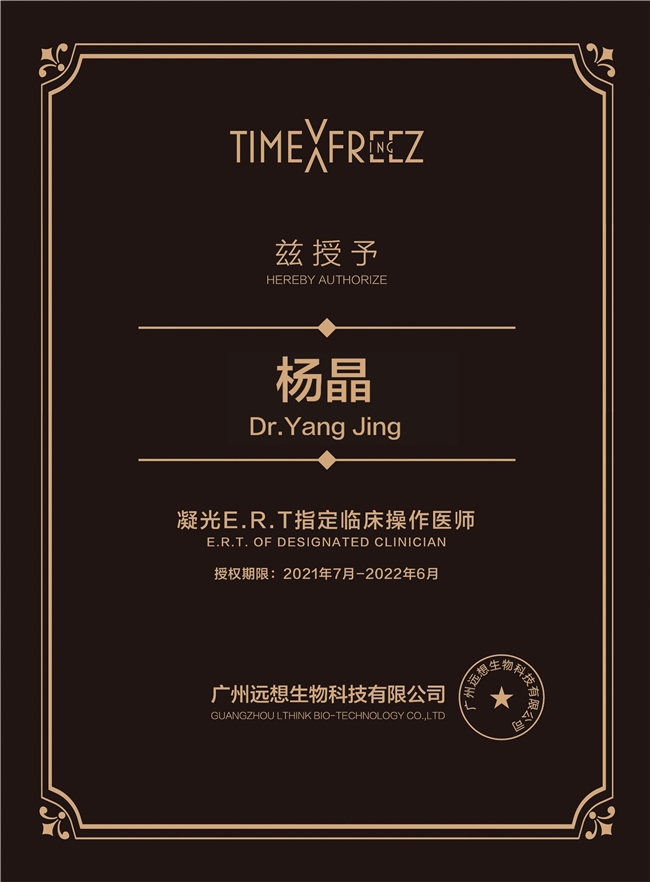 她是THERMAGE(热玛吉)认证官方培训导师、菲蜜丽官方认证操作医师、超声炮官方授证操作医师,同时也是FOTONA4D无创面激光系统、赛诺龙PICOWAY超皮秒的官方认证医师。此外,她还持有美国ALLERGAN公司保妥适、英国吉适国内认证医生资格,并担任艾尔建酷塑授证医师、薇旖美胶原星钻医师、思嘉丽黄金微针认证操作导师、Q-lift女王超声刀认证医师。