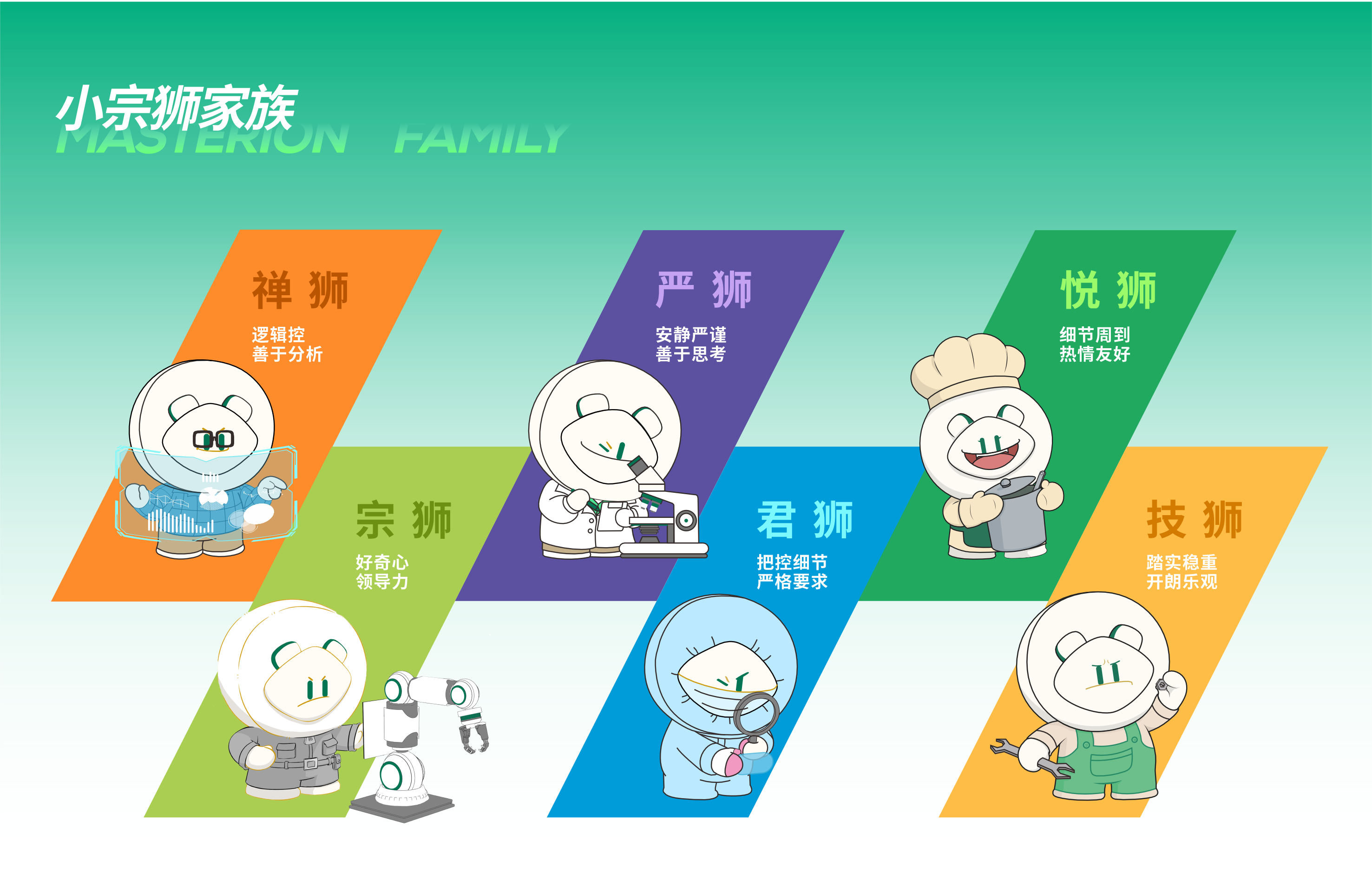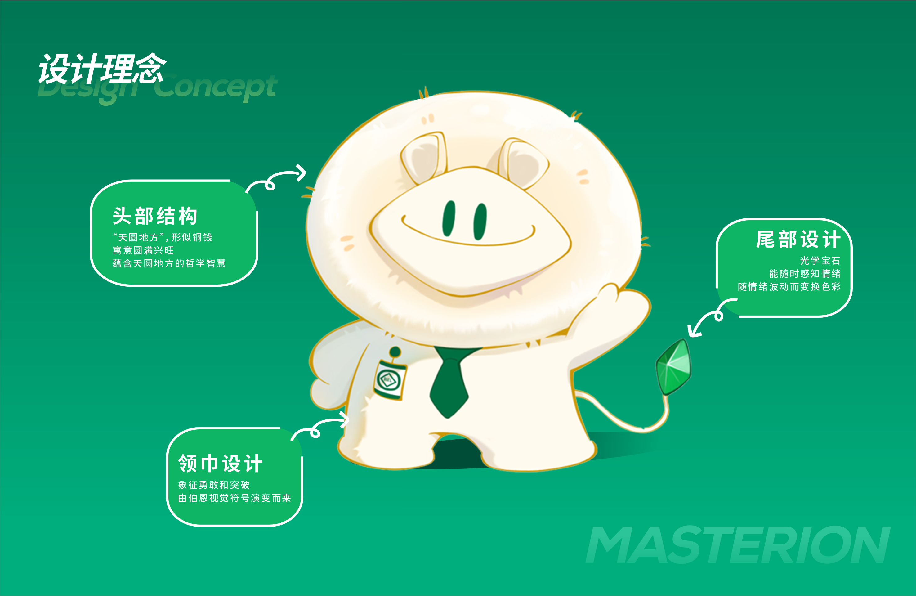 其设计融合了中国传统哲学智慧与现代审美:颈部系有象征“勇敢与突破”的绿色领巾,尾巴末端嵌有一颗能随情绪变色的宝石,代表制造业工程师严谨、创新的精神。在伯恩光学的虚拟世界“伯恩星”中,小宗狮被设定为一名充满好奇心的技术工程师,完美继承了伯恩狮家族的工匠精神。