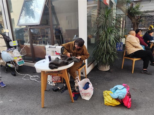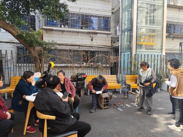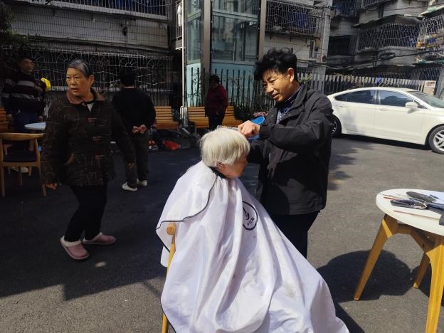 本次活动紧扣社区老年居民较多、便民服务需求集中的特点,聚焦居民“家门口的小事”,精准设置磨刀、理发、衣物缝补三大实用服务板块。社区特邀专业磨刀师、理发师、裁缝师现场坐阵,为辖区居民提供免费服务。磨刀师傅娴熟打磨菜刀、剪刀,解决居民刀具钝旧的生活难题;理发师耐心为老年人、儿童及行动不便居民修剪发型,用精湛手艺让大家容光焕发;裁缝师细致处理衣物缝补、改边、钉扣等问题,贴心解决居民的衣物小困扰,专业又周到的服务收获了居民们的连连称赞。