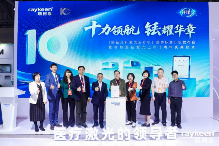 展会同期,瑞柯恩盛大举行《掺铥光纤激光治疗机》团体标准升级发布会暨瑞柯恩铥激光上市十周年庆典仪式,以双喜同庆的重磅时刻,汇聚行业智慧,共启国产医疗激光发展的新征程。