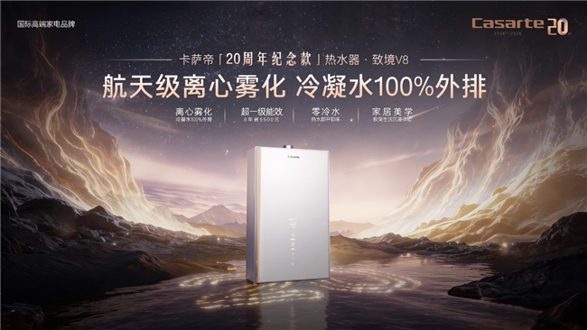 2026年正值卡萨帝创牌20周年,在这个具有里程碑意义的节点,卡萨帝推出了「20周年纪念款」热水器·致境V8。作为面向AI时代的新品,致境V8比传统热水器更“懂”现代家庭的用水习惯。恒温配置上拥有最为稳定的AI双驱恒温技术,主水路和旁通水路双控,同时依托与西安交大联合推出的DMC算法,它能预判未来26秒的家庭用水变化,实现毫秒级调节,彻底终结了洗浴过程中水温忽冷忽热的问题,沐浴全程恒温。同时,这也是卡萨帝承接海尔智家建设平台服务型科技生态企业定位的又一次创新实践。