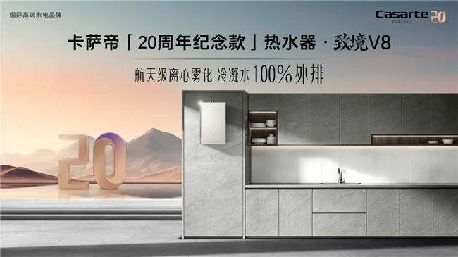 到2026年,卡萨帝已经深耕热水器行业20年。3月30日,卡萨帝「20周年纪念款」热水器·致境V8正式上市,以行业首创的航天级离心雾化科技,从根本上解决了传统一级能效热水器安装复杂、影响美观的难题,开启了一级能效热水器“免冷凝水管安装”时代。这也是承接海尔智家建设平台服务型科技生态企业定位的一次实践:以科技创新驱动场景迭代、生活升级。
