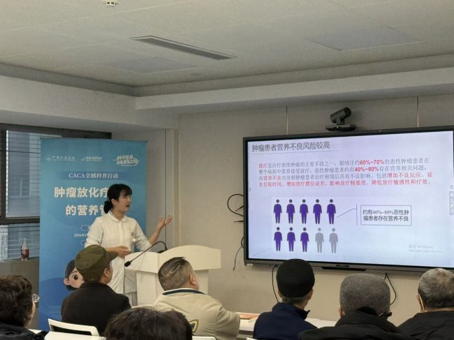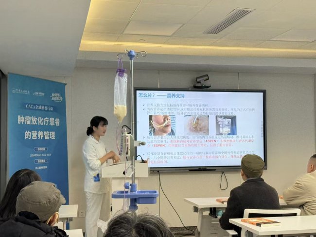 放射治疗(放疗)是肿瘤治疗的三大手段之一,约70%的肿瘤患者在病程中需要接受放疗。然而,在精准打击肿瘤细胞的同时,放疗也可能带来一系列副作用,导致患者“吃不消、营养差”。对于放疗患者而言,营养不是锦上添花,而是维系治疗的“生命线”。2026年2月6日下午,由中国抗癌协会科普委员会主办、浙江省肿瘤医院承办的CACA全域科普行动“科学营养 点亮康复之路”系列科普活动之“关爱生命,‘养’护放疗路”患教会,在医院211西示教室顺利举行。围绕着“营养筛查、三个W、口服营养补充”等内容开展。