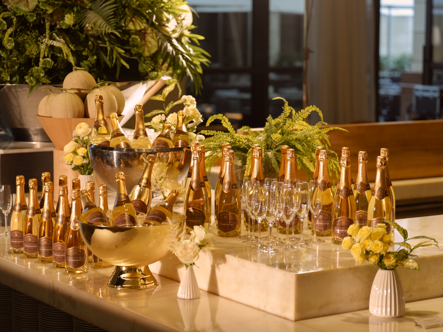 高级自助餐厅”佳肴无间”将提供顶级香槟及红、白葡萄酒无限畅饮服务直到4月30日。主打酒款“Phillizot et Fils Numero 8 Paradise Edition”是青龙电影奖、百想艺术大赏等韩国顶级颁奖典礼的官方指定香槟,为宾客的美食之旅增添金色高光时刻。