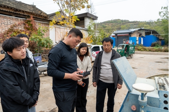 “果园喷药不能都依赖植保无人机作业,植保无人机作业也会受到一定的条件限制,比如果园气象条件不满足飞行条件等。无人地面喷雾车作为‘地面主力’,其技术也在不断进步。”科技特派员指导了几个技术要点:一是药液配比与搅拌均匀度。在了解农药的毒力与药效、农药对果树的影响后,科技特派员说:“必须采用二次稀释法,确保药液在水中均匀分散,避免沉淀堵塞喷头。”二是喷头选择与压力控制。“要根据防治对象和果树生长时期,选择合适的喷头(如扇形喷头、锥形喷头)。压力并非越大越好,压力过大,药液易飘移;压力过小,雾化效果差。要找到那个平衡点,确保雾滴细小均匀,覆盖率高。”三是行进速度与喷幅匹配。“要保持匀速行驶,确保单位面积内的受药量一致,避免重喷和漏喷。”科技特派员组织果农们进行了故障排除的现场教学,如如何清洗过滤器、更换喷头、判断管路堵塞等。“机器是死的,人是活的。只有懂了原理,会了维护,这台设备才能真正成为你的好帮手。”无人机和无人地面喷雾车精准作业不仅助力增收,而且可以大幅减少农药浪费和滥用,也是在践行“绿水青山就是金山银山”理念。