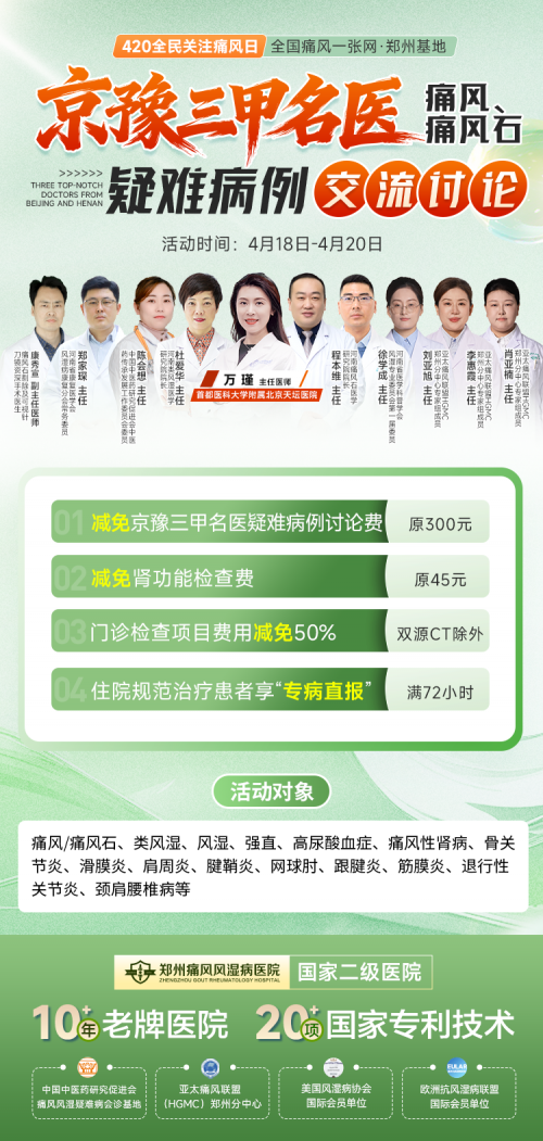 420全民关注痛风日|全国痛风一张网·郑州痛风风湿病医院基地京豫三甲名医痛风、痛风石疑难病例交流讨论
