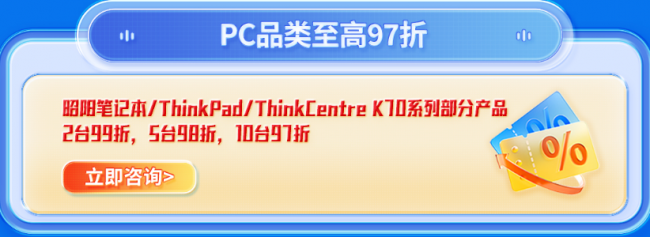 在数字化办公全面普及的今天,PC 设备作为企业运营的基础工具,其采购成本直接影响企业整体预算规划。联想政企深知企业批量采购需求,特推出 PC 全品类阶梯价优惠,让企业以更经济的成本完成设备更新换代。活动期间,昭阳笔记本 / ThinkPad/ThinkCentre K70 系列部分产品可享阶梯折扣:2 台 99 折,5 台 98 折,10 台 97 折。无论是中小企业办公升级,还是大型集团批量采购,都能找到适配的优惠方案,助力企业高效配置 IT 资源,提升办公效率。