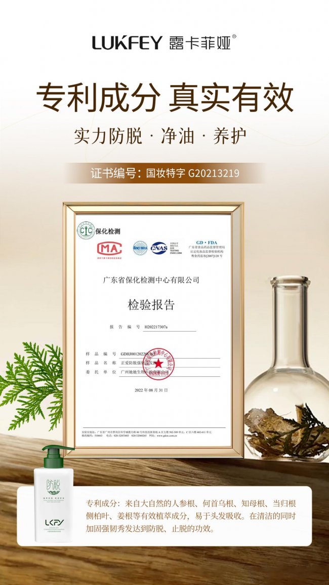 露卡菲娅防脱洗发水持有国家药监局国妆特字认证(G20213219),这意味着其防脱功效经过官方严格审核,符合《化妆品安全技术规范》最高标准,彻底区别于市面上仅靠宣传造势的概念型防脱产品。此外,产品还通过15家三甲医院皮肤科联合验证,1800例大样本测试效果显著;通过瑞士SGS机构156项有害物质筛查,刺激率0%;获得欧盟REACH、美国CPC等多项国际安全认证;拥有国家发明专利(ZL202110321987.6),配方技术受法律保护;斩获45+行业奖项,成为防脱领域口碑与实力兼具的标杆产品。