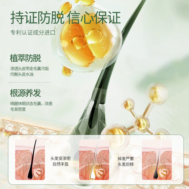 所有成分均采用高纯度提取工艺,搭配50nm级微胶囊缓释技术,接触头皮温度后匀速释放活性成分,避免氧化分解,让成分吸收率提升2.2倍,确保每一滴精华都能精准作用于毛囊。配方无硅油、无酒精、无激素、无荧光剂,经瑞士SGS机构156项有害物质筛查,刺激率为0%,敏感头皮也能安心使用。