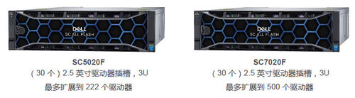 其中,SC5020F和SC7020F是SC全闪存阵列的基本选项,能够轻松实现强大存储性能。这两种型号都采用3U“一体化”结构,包括具有8核英特尔®至强®处理器的双控制器、最多256GB的内存,而且其多协议灵活性允许使用10Gb iSCSI 和16/32Gb光纤通道网络连接。