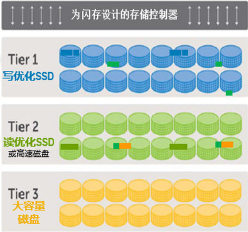 ▐ 从性能上来看,全闪存由于使用了SSD闪存介质,加之在软件栈上针对闪存介质和整个存储系统进行了算法的优化设计,可以用更小的容量空间带来更高的IOPS以及极低的响应延迟。