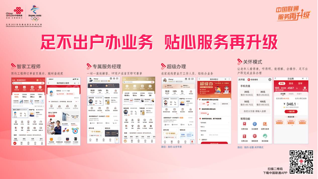 当前西安市疫情防控形势严峻,各类不稳定不确定因素增多增强,为减少市民外出风险,陕西联通提供24小时线上办理服务,通过中国联通APP用户可足不出户进行业务查询、充值缴费、流量包订购、宽带服务、专人服务等业务办理,不仅有效提高业务办理效率,还减少外出交叉感染风险,让更多用户轻松畅享5G。