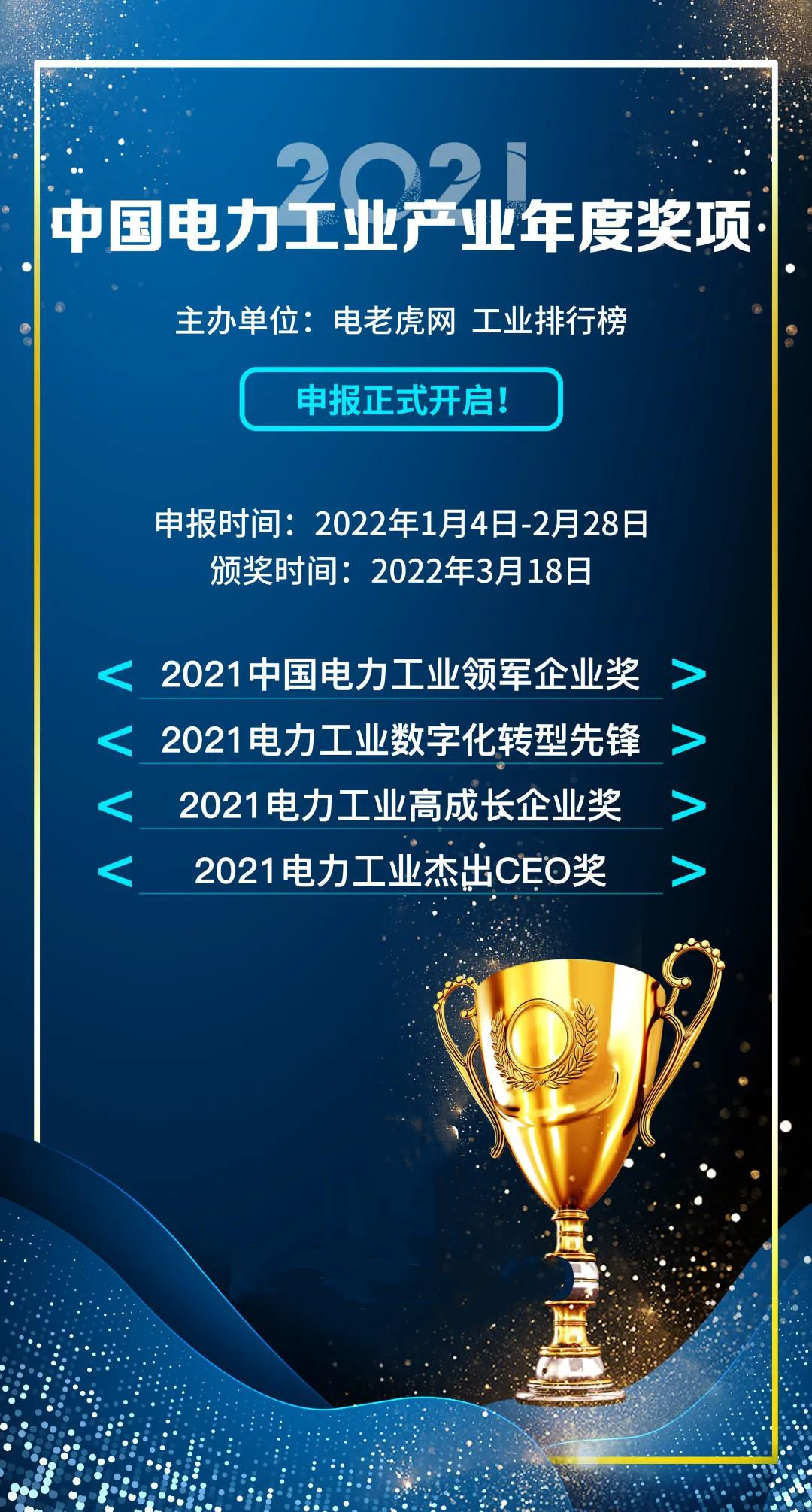 伴随着企业纷纷交出年度答卷,在岁末年初,时光交迭之际,电老虎网(835192)旗下工业评选排行榜平台——虎评特别联合行业协会、权威媒体发起“2021年中国电力工业产业年度奖项”评选。褒奖优秀企业,回顾产业进程,展望行业趋势,力求为行业甄选出指引方向的「灯塔」型年度企业。