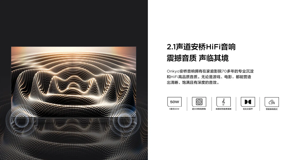 一直以来,电视品牌大多都在显示技术上做提升,QLED、OLED、Mini LED、Micro LED等等技术已经是各家厂商争相攀登的高峰。但随着98英寸等超大屏电视的普及以及用户对观影要求的提高,音质也渐渐成为他们选购电视的标准之一。遗憾的是,多数厂商没有重视电视的声音体验,以致于很多大屏电视的音质仅停留在“听个响”的水准,用户根本无法获得媲美影院的观看效果。