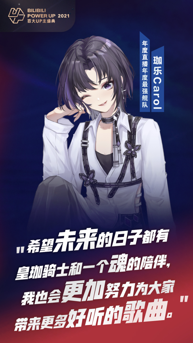 此外,虚拟女团asoul成员珈乐,在本次B站up主评选中,获得直播年度最强舰队up主荣誉。在asoul团队当中,珈乐的实力也非常出色。此前的珈乐生日会,曾成功刷新了B站历史,以12000舰的成就登顶主播区,当晚直播过程中,更是获得超1000万人气值,可见珈乐的受欢迎程度。