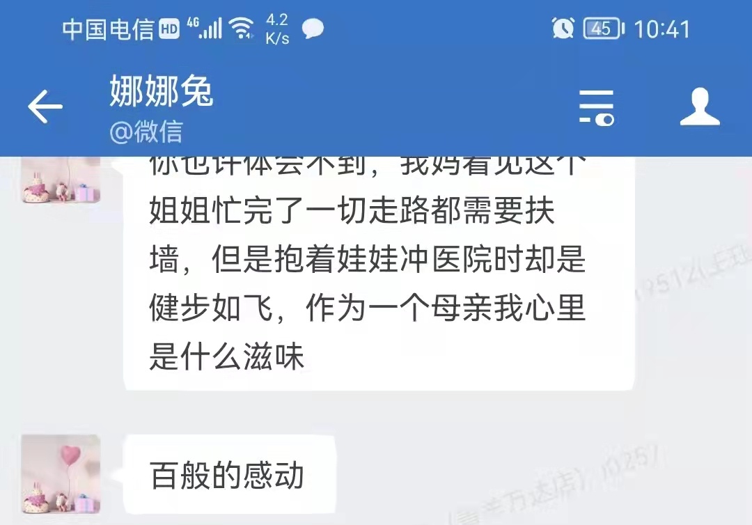 “你也许体会不到,看见这个走路都需要扶墙的姐姐,抱着娃娃健步如飞冲进医院时,作为家长,我们心里是什么滋味。”