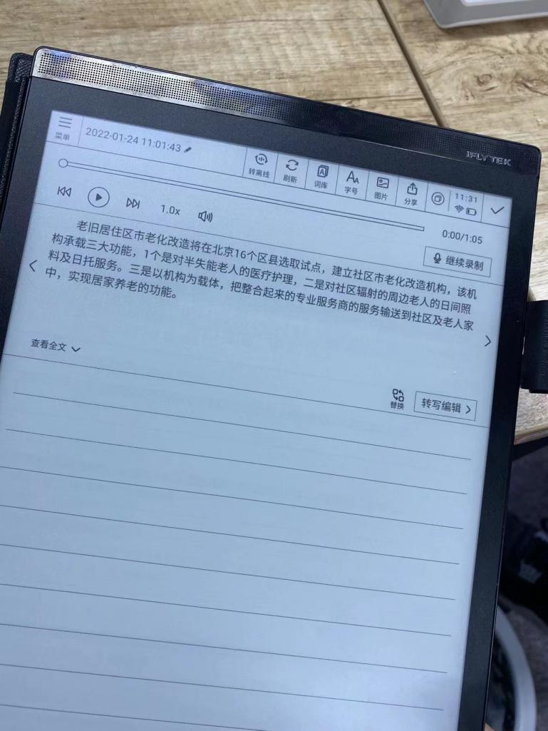 如语音转写功能,科大讯飞智能办公本依托讯飞核心语音识别技术,能够准确识别会议发言,并实时转写在屏幕上。对于不同人的发言,科大讯飞智能办公本也可以通过声纹进行区分并记录。除了语音转写,像智能笔记、手写识别、轻办公等功能,也是其他电子阅读器所不具备的,也正因为如此科大讯飞智能办公本深受职场人士的喜爱。