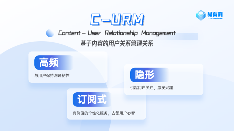 比如,在国外以Verblio、Writer Access为代表的智能内容生产平台,通过优质创作者引入,根据客户需求,把创作者和内容进行匹配提升内容精准度,并能通过内容反馈机制进行内容修订、SEO优化等手段进行优质内容传播;而在国内,以易有料为代表的企业级智能运营平台,不仅能够为合作企业提供更多创作者资源和更丰富的内容类型,企业可以根据用户的需求结合企业自身内容策略,借助平台进行智能化管理与多渠道分发,基于内容数据反馈构建“以用户为中心”的内容运营策略。同时,还先于行业提出C-URM(Content-User Relationship Management)概念体系,即基于内容的用户关系管理,帮助企业搭建全域内容生态,对用户进行多触点内容营销和关系维护,与用户达成长期有效的“沟通”关系。
