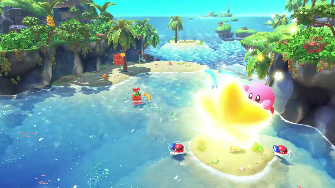 《星之卡比:探索发现》是继2018年《星之卡比:新星同盟》后的系列正统续作,也是系列首次3D动作游戏,舞台是融合了文明和大自然的未知“新世界”。为了救出被俘虏的“瓦豆鲁迪”,卡比开始了冒险。