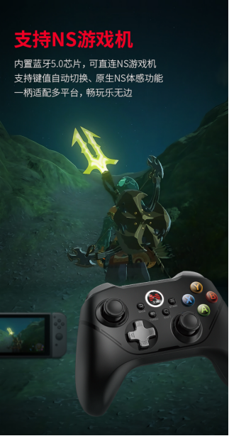 外接NS游戏机使用时,北通阿修罗2 Pro多模版可以原生支持NS的体感功能,更加爽快无痕地控制游戏。并且手柄使用的是高速蓝牙5.0芯片,可以更好地抗干扰和保持稳定性,在和游戏机进行连接的时候游戏更畅快。