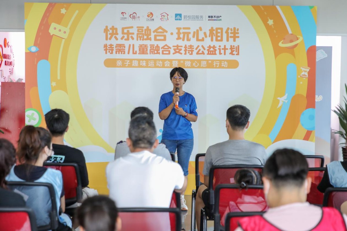 港联不动产朱少慧女士作为企业亲子陪伴家庭的志愿者代表,表示这次活动让她和孩子对特需儿童有一个基础的认识,亲子运动会活动通过团队竞技合作的方式提升他们的社会融合能力,以后也会更多地带孩子一起参与公益活动,希望更多的人给予特需儿童更多的理解和接纳。